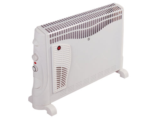Ventilazione Turbo, 3 potenze selezionabili: 750/1250/2000 Watt con termostato ambiente. Dimensioni 72x14x44 cm..