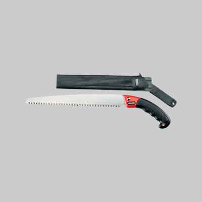 Lama cromata in acciaio temprata ad impulsi. Impugnatura ergonomica antiscivolo. Fornito con fodero di protezione.
