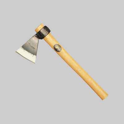 Testa in acciaio forgiato e temprato. Manico in legno verniciato.