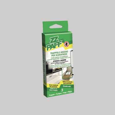 Trappola a colla di semplice impiego perchè dotata di base alimentare specifica per blatte. E' eliminabile con i rifiuti domestici. Attiva fino a 3-4 settimane