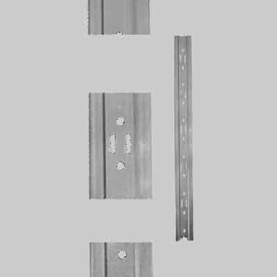 In lamiera d'acciaio profilata a freddo con rivestimento superficiale di finitura verniciato con polveri epossidiche. Spessore 1,0 mm. Profilo scatolato, dimensione 45x25 mm. Portata max per montante 500 kg.