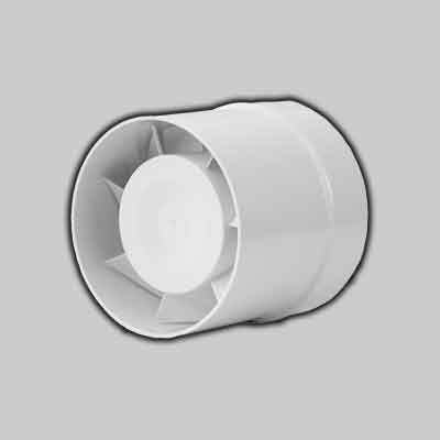 Ventilatore tubolare in plastica ABS con cuscinetti a sfera, diam. 100 mm. Tensione 220V/50Hz, potenza 19W.