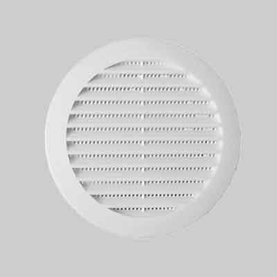 Da incasso. In polistirolo antiurto con rete anti insetti stampata. Colore bianco.