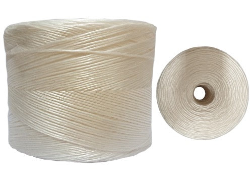 Polipropilene omopolimero bianco, stabilizzazione UV, senza nodi. Bobina 2 Kg.. Titolo 500 mt/Kg. - Spess. 2,5 mm.